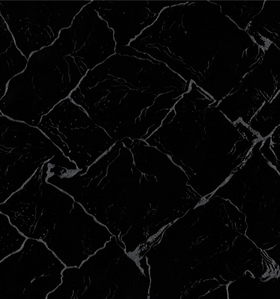 The Black Cracked Ice pattern laminate features sharp, fragmented lines resembling cracked ice set against a deep black background. This bold design adds dramatic texture and a striking, contemporary edge to any modern. interior.