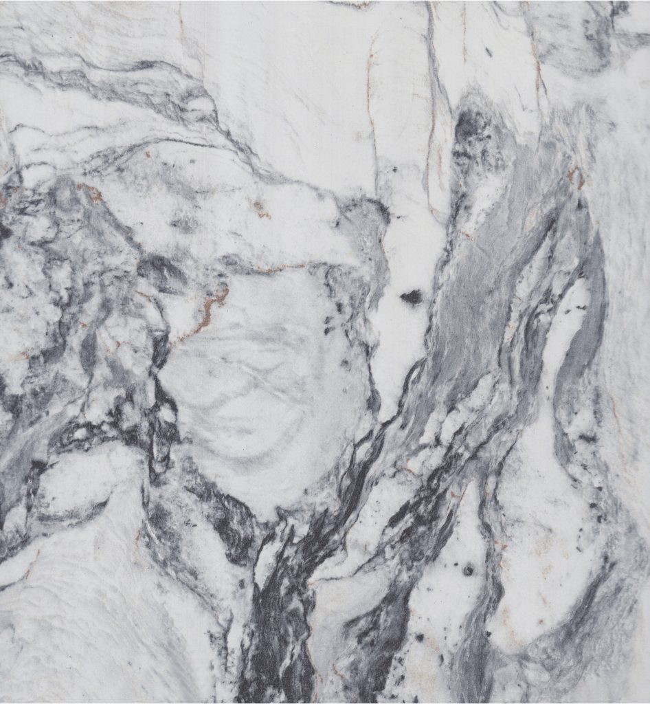 Palissandro Bluette marble laminate showcases a unique blend of soft blues, grays, and creamy beige tones with delicate veining, reflecting the serene elegance of natural Italian marble. Perfect for creating sophisticated and tranquil interiors, it offers the luxurious appearance of stone with the practicality and affordability of laminate.
