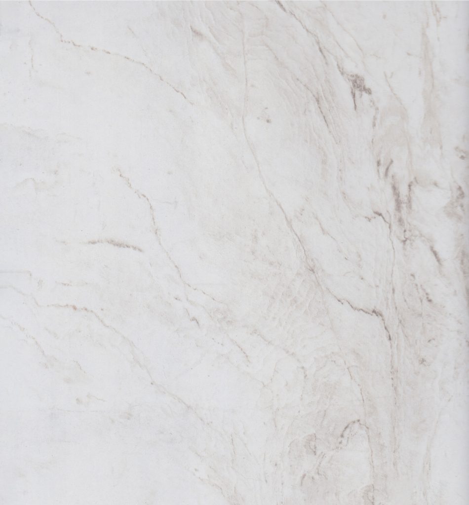 Super White Quartzite marble laminate features a soft gray-white background with subtle, flowing veins in shades of gray and charcoal. Inspired by natural quartzite, it delivers a sleek, contemporary look with the strength, versatility, and low-maintenance benefits of laminate—ideal for both modern and classic interiors.